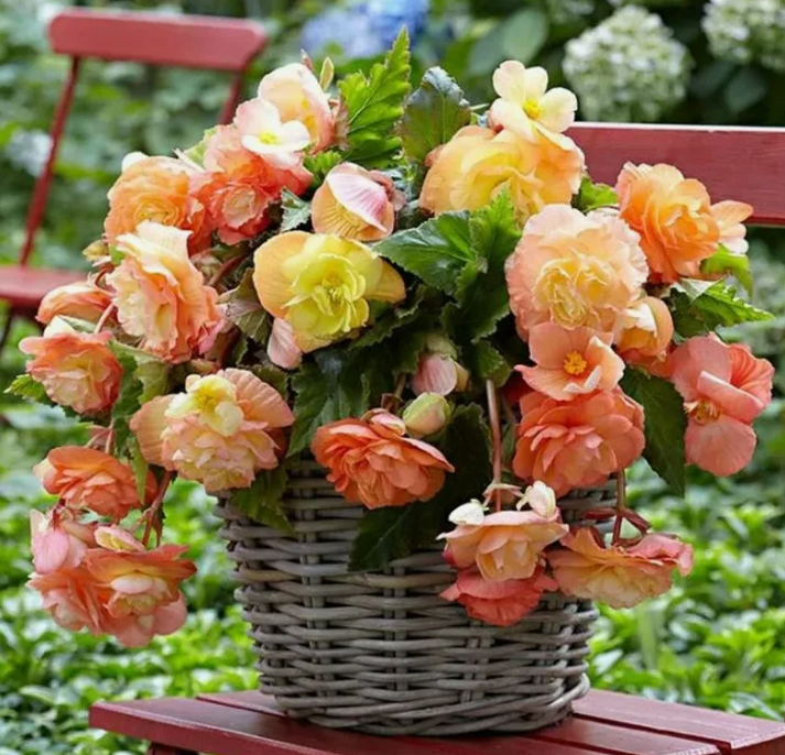 Клубневые бегонии обычно высаживают в кашпо/вазоны. Преимущества приобретения бегоний клубнями в том, что они быстрее нарастают и быстрее образуют красивую цветущую шапку.