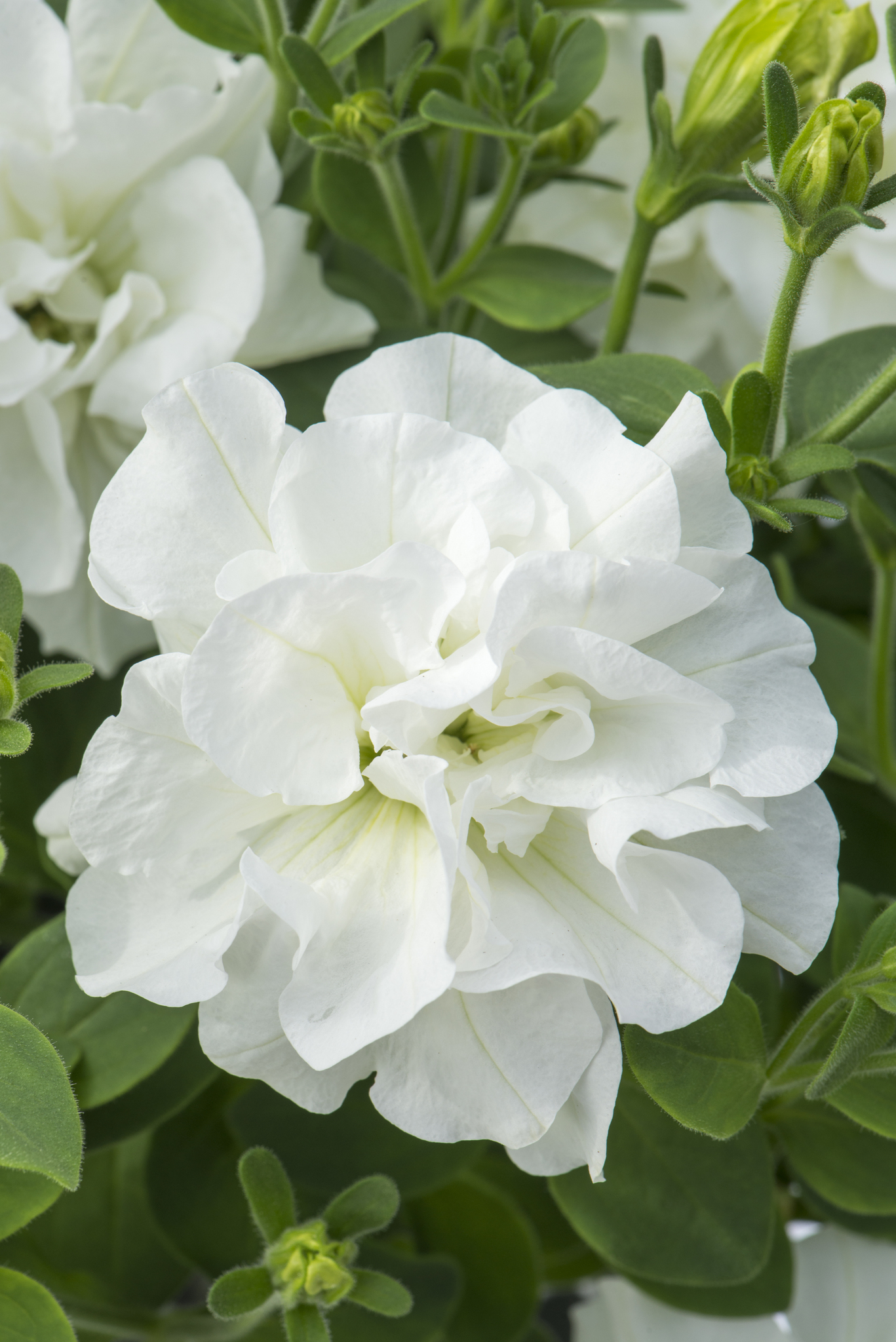 Ампельная серия махровых вегетативных петуний. Довольно быстро наращивают плети. Рекомендуется прищипка 2 раза. В черенке и при высадке в кашпо. Цветение плотное, непрерывное.