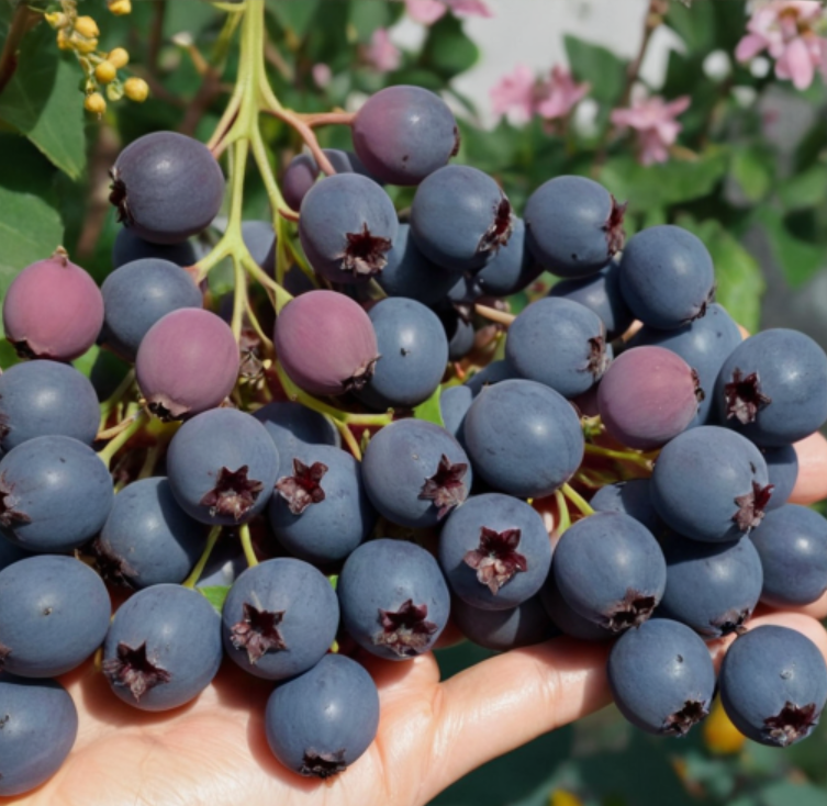 Ирга канадской селекции, имеет очень сладкие ягоды без горечи, высокую урожайность. С одного куста 10-12кг ягод.