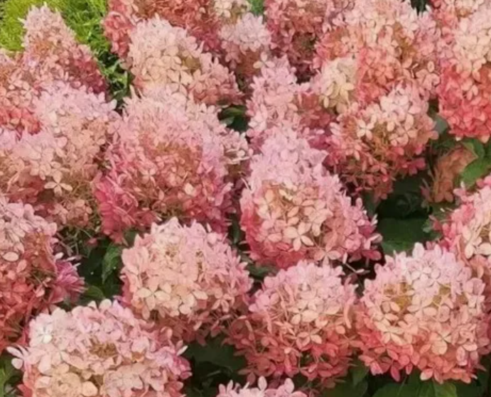 Куст прекрасной шаровидной формы. Окраска меняется по мере цветения от зеленого к розовому