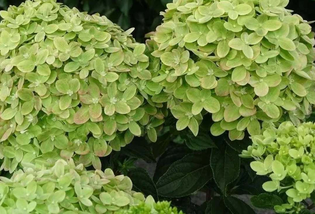Куст прекрасной шаровидной формы. Окраска cохраняет зеленый цвет на протяжении всего цветения. Осенью лепестки может тронуть розоватый румянец.