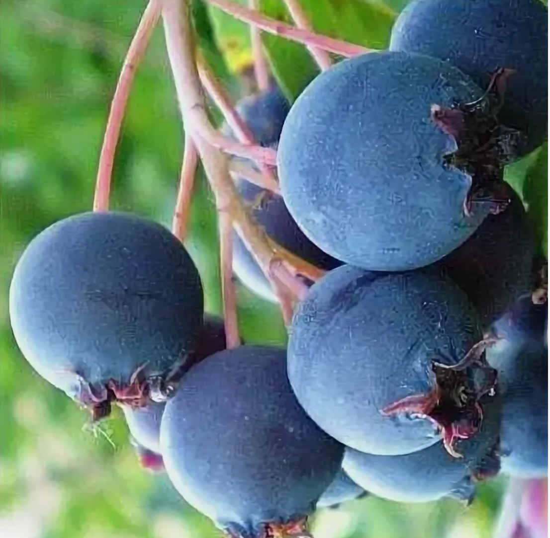 Ирга канадской селекции, имеет очень сладкие ягоды без горечи, высокую урожайность. С одного куста 10-20кг ягод.