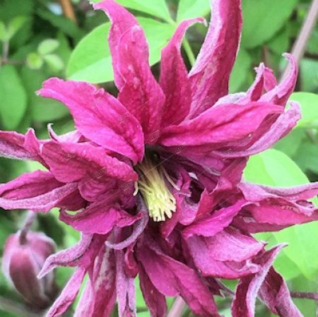 Клематис Розалин в контейнере 2л 3,5 года выращен в ЛО 3я группа обрезки Выращен из меристемного черенка в Лен.области. Розалин очень красивый, обильно и длительно цветущий, исключительно неприхотливый сорт клематиса