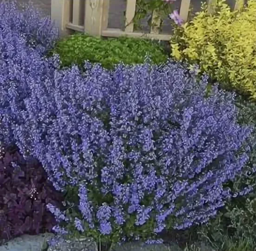 Среднего роста сорт котовника, высота 40-45см, ширина около 60см.