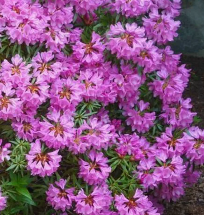 Отличный сорт. Самый быстрорастущий и неприхотливый среди рододендронов. Куст густой, округлый.