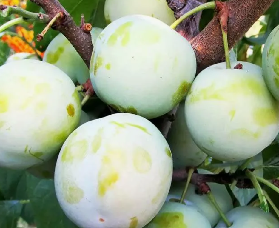Плоды крупные, 6-7см, светлого зелено-желтого цвета, мякоть сочная, ароматная, сладкая.