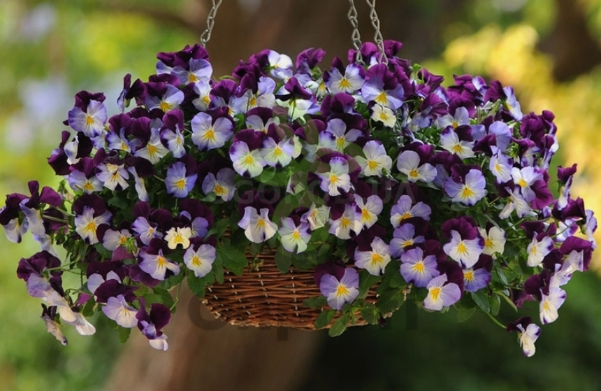 Ампельный сорт виолы с крупными цветками, зацветает рано, цветет все лето непрерывно.